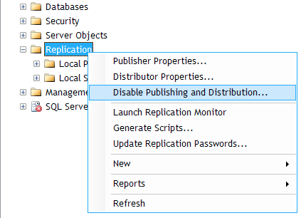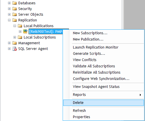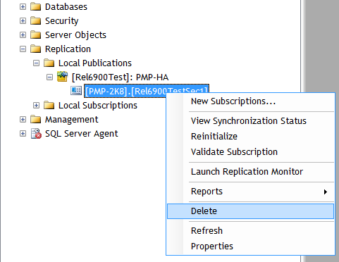 If you have configured High Availability, before applying the upgradepack, PMP requires that the 'subscriptions' and 'publications' related to PMP replication data be deleted AND 'publishing and distribution' be disabled. To do these, carry out the steps below: