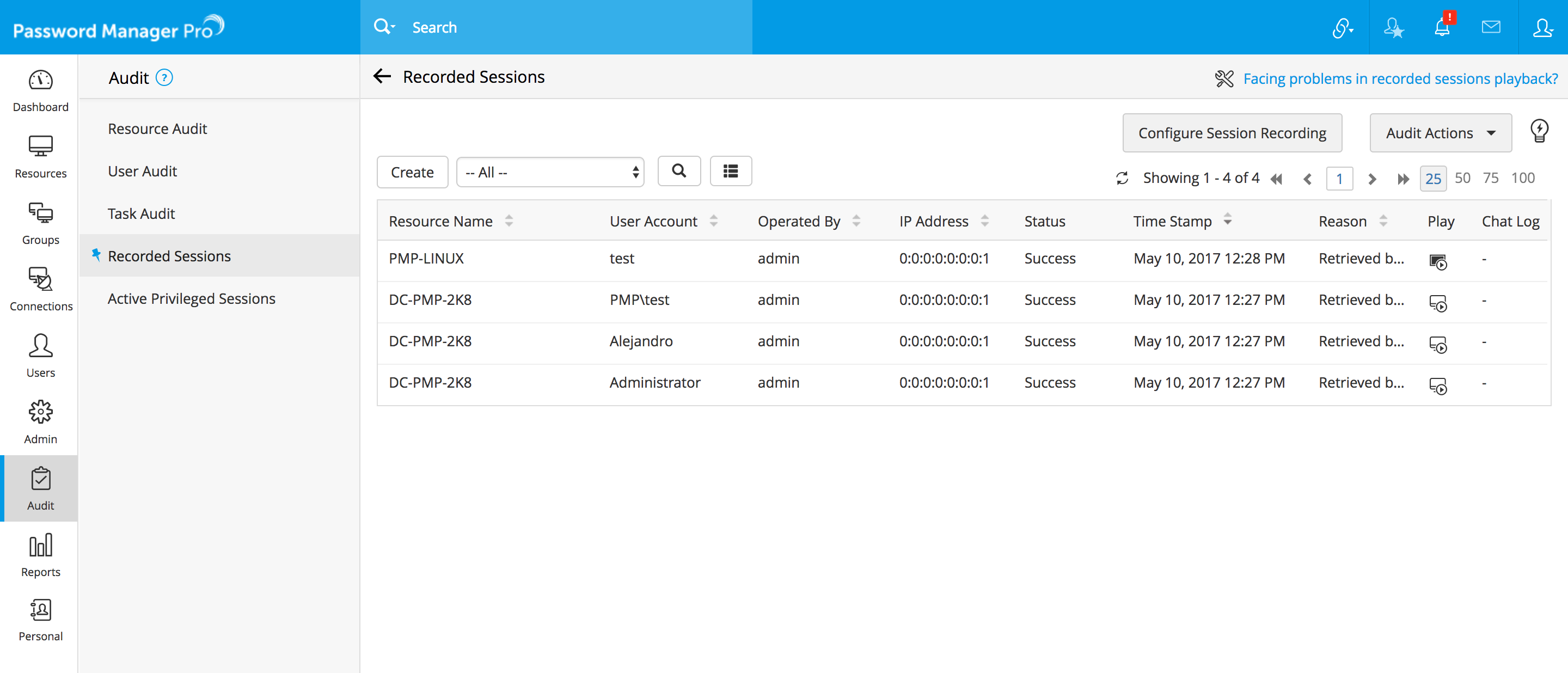 将录制的视频加密并存储在防篡改档案中。随时检索它们以查看特权会话期间执行的所有操作。