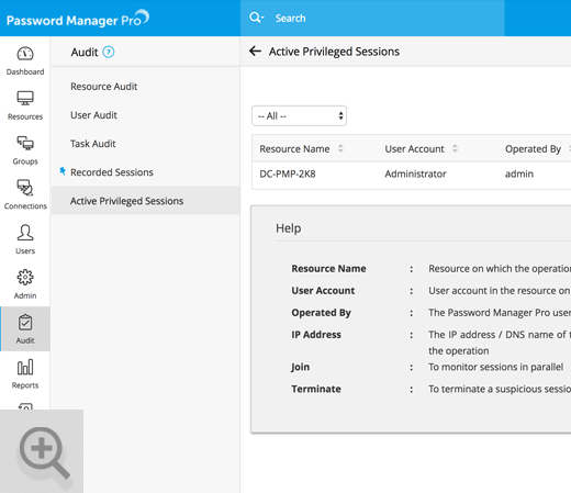 实时影子特权会话,以监督用户活动。
