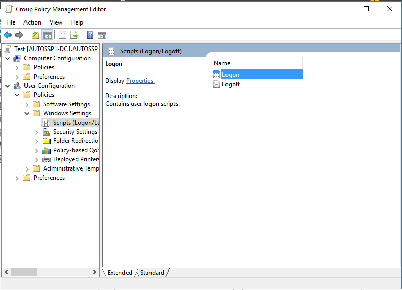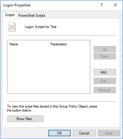 - 在打开的登录属性窗口中,单击 显示文件。显示一个以 User\Scripts\Logon\ 结尾的文件夹。