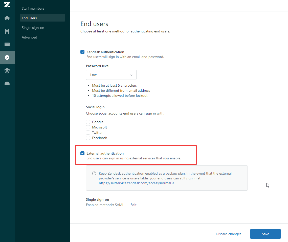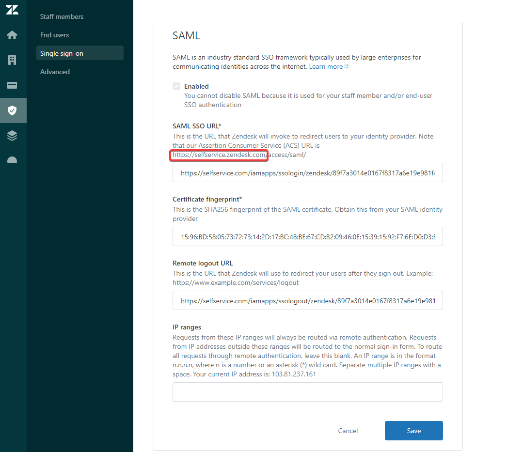 这些步骤将指导您设置ADSelfService Plus和Zendesk之间的单点登录功能。