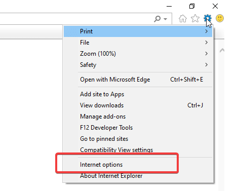 - 浏览器将打开。现在转到设置并选择Internet选项。