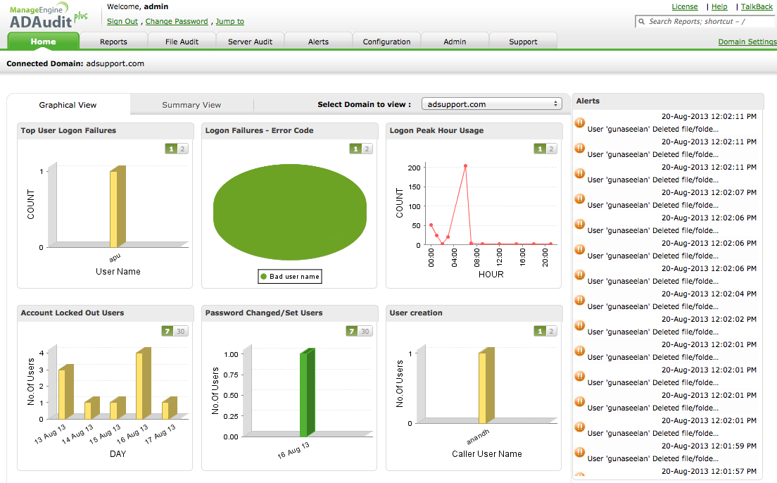 We used ADAudit Plus to monitor changes in a domain environment. It helped set up notifications about changes in key safety groups and make control changes in administrative units.