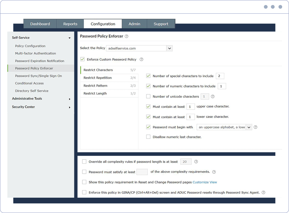 如今,企业用户正被创建、管理和更新无数用户名和密码的无休止任务所困扰,导致忘记密码、服务台票单过载和创建易受攻击的密码。ADSelfService Plus通过自助服务密码管理、高级密码策略、密码同步和密码过期通知为您的IT管理员和最终用户带来好处。