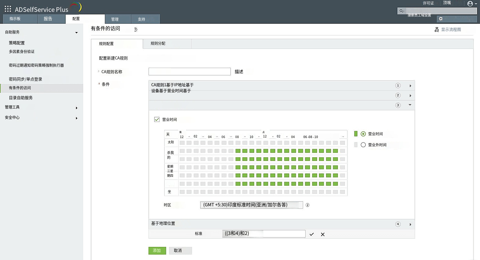 ManageEngine ADSelfService Plus 提供可定制的多因素身份验证与有条件访问,并提供强密码策略,以增强特权帐户的安全性。您可以根据用户的OU和组成员身份定制多因素身份验证方法和密码策略要求,从而为管理员帐户配置严格的设置。使用有条件访问策略,您还可以基于IP、工作时间和地理位置创建专属的多因素身份验证规则,以保护特权身份。