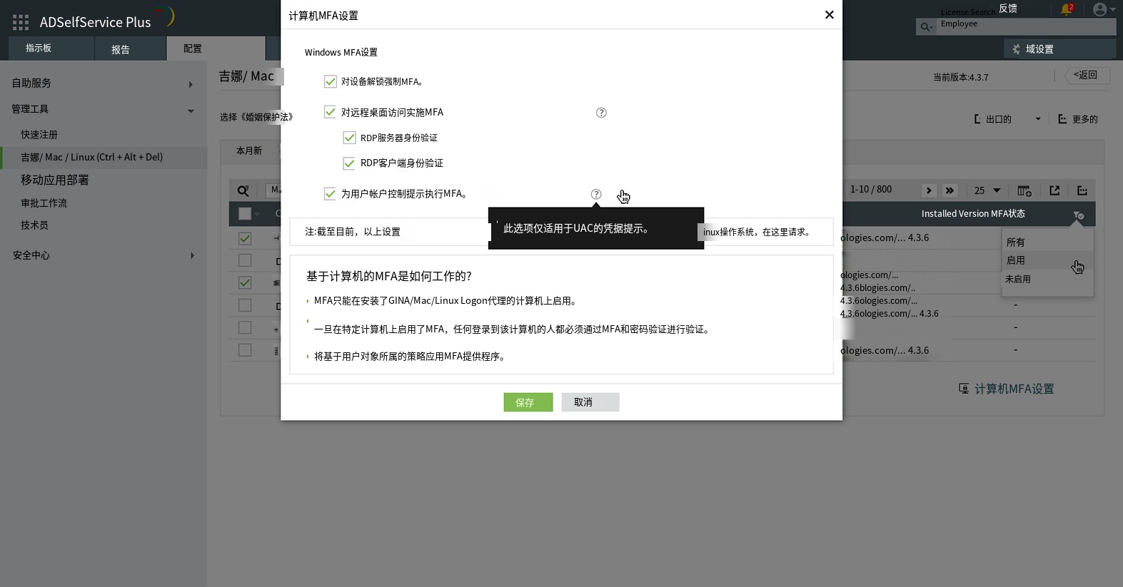 根据用户的权限、OU、组和域成员身份,为用户定制UAC MFA,分配不同的身份验证器进行验证。