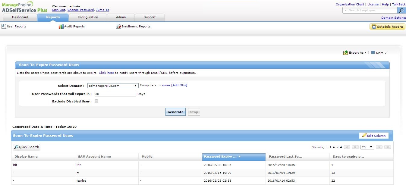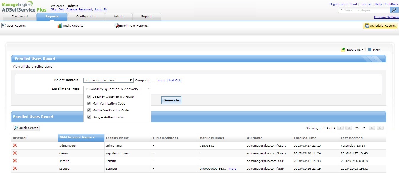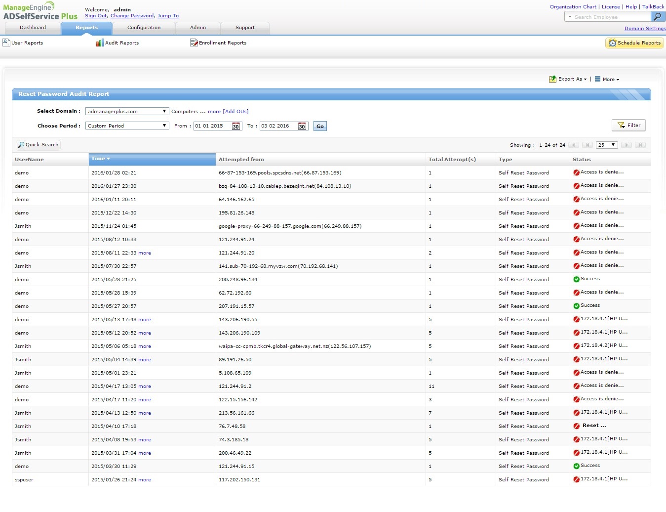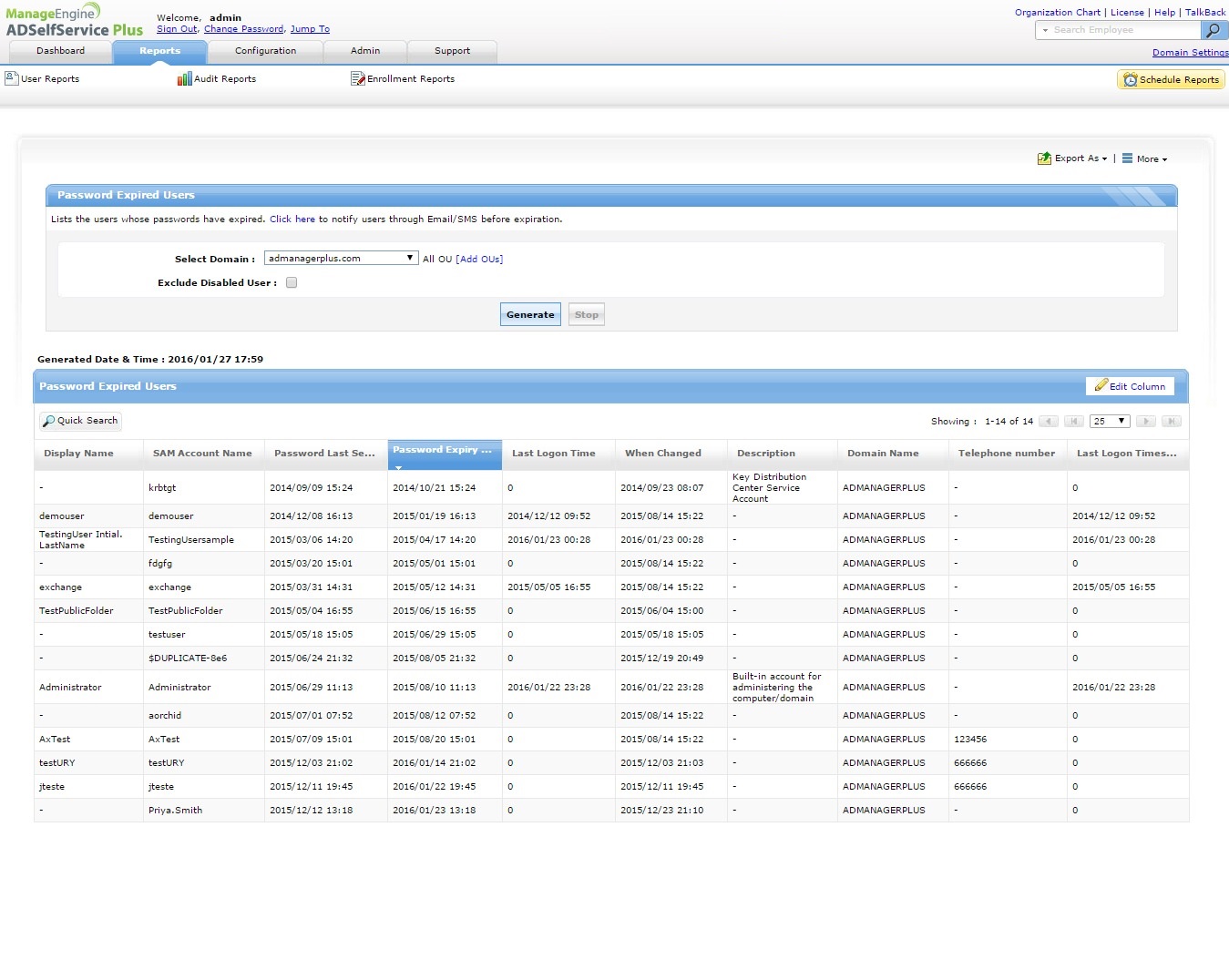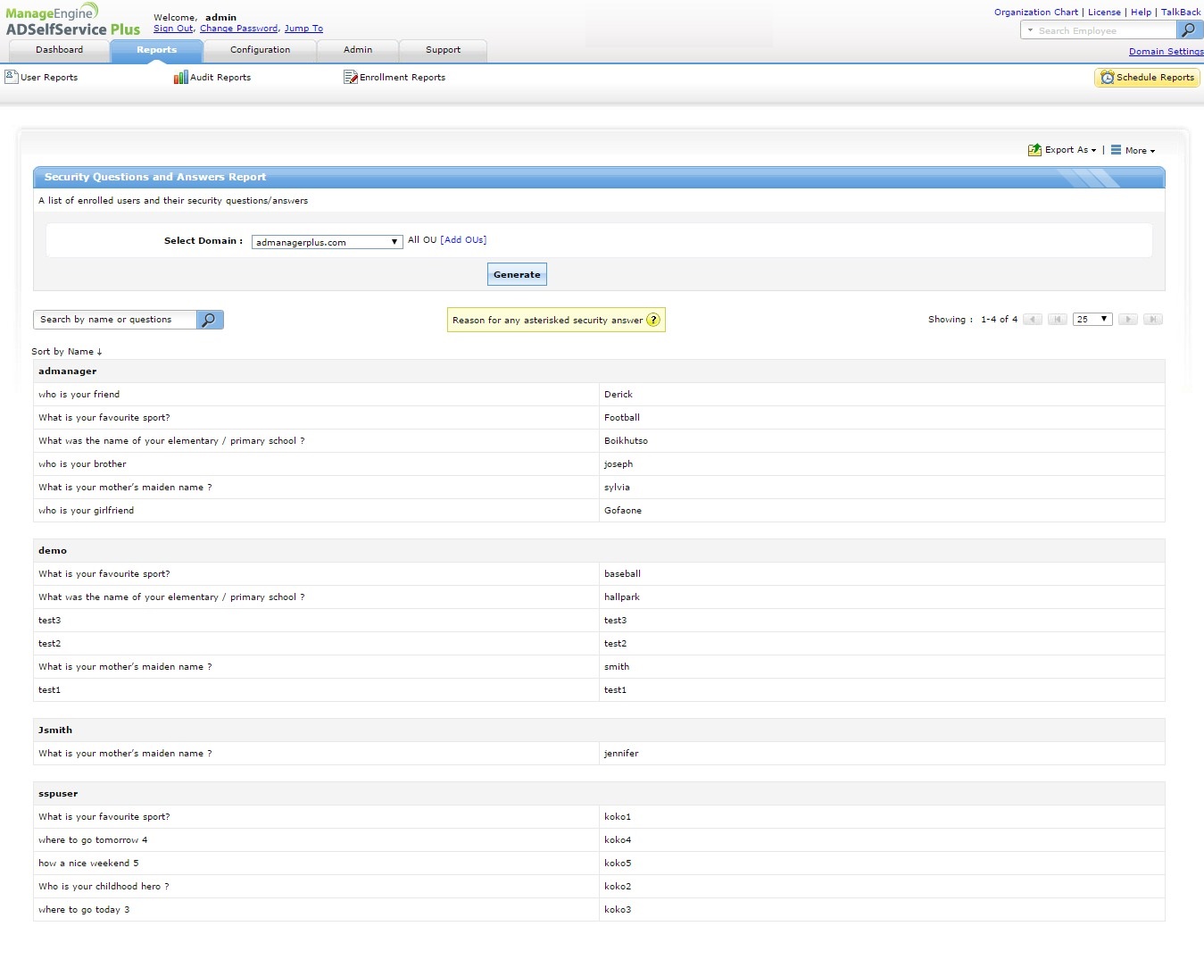 ADSelfService Plus中的报表划分为三种不同的类别: