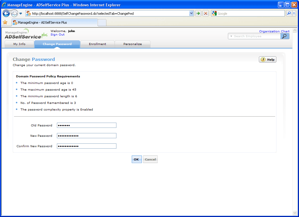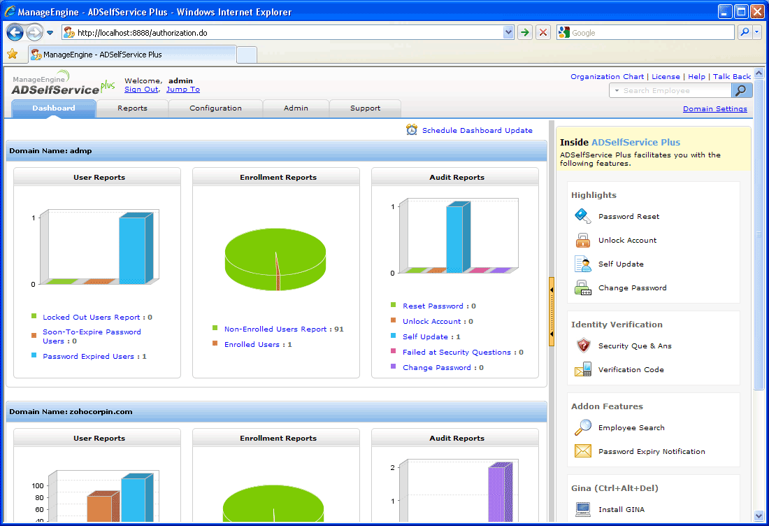 Besides empowering users with various functionalities, ADSelfService Plus also offers: employee search (a comprehensive search box for users & administrators) & password expiry notifications (for administrators, allows them to intimate users of password expiry)