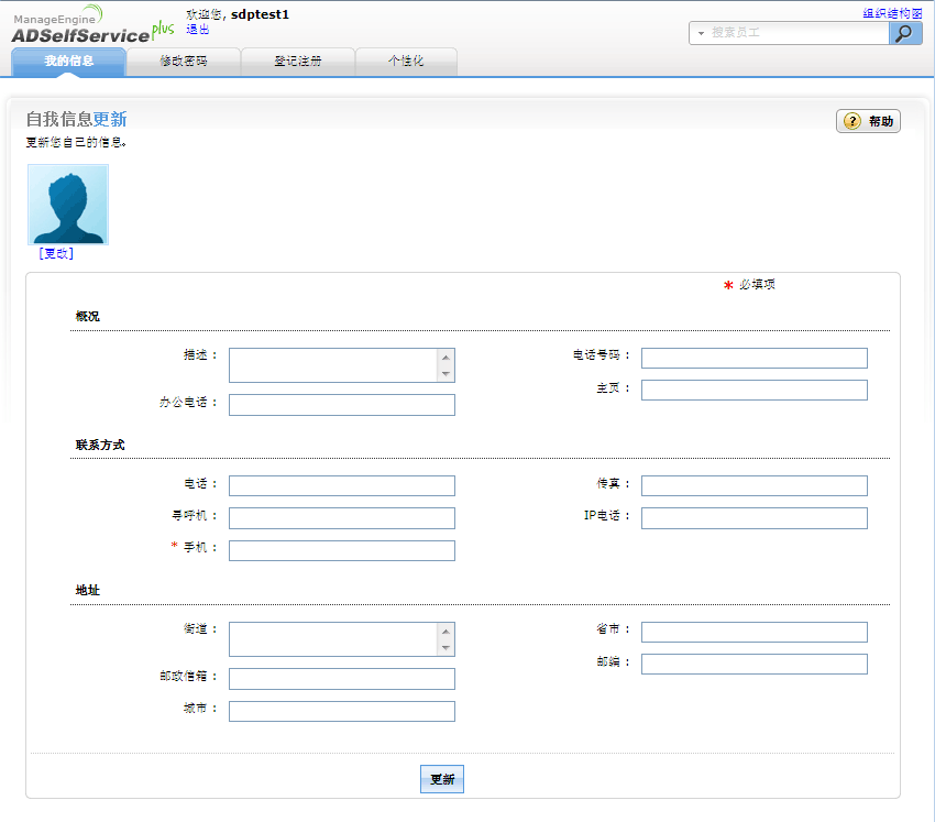 注意: 带有‘*’的字段,是必填项(它有您的IT管理员设定),更新时必需填写相应的信息,不能为空。