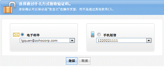 如果只采用验证码的方法,那么在验证页面将提示您选择获取验证码的方式:邮件或者手机短信。