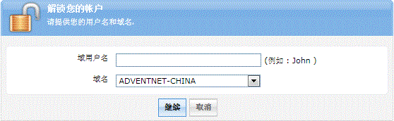 而对于普通用户访问ADSelfService Plus时,将会看到下图的登录页面,点击其中的"解锁帐户",即可进行帐户解锁。