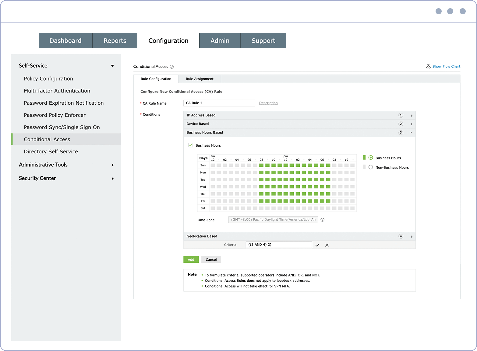 从广泛的条件中进行选择,如IP、营业时间、设备和地理位置。
