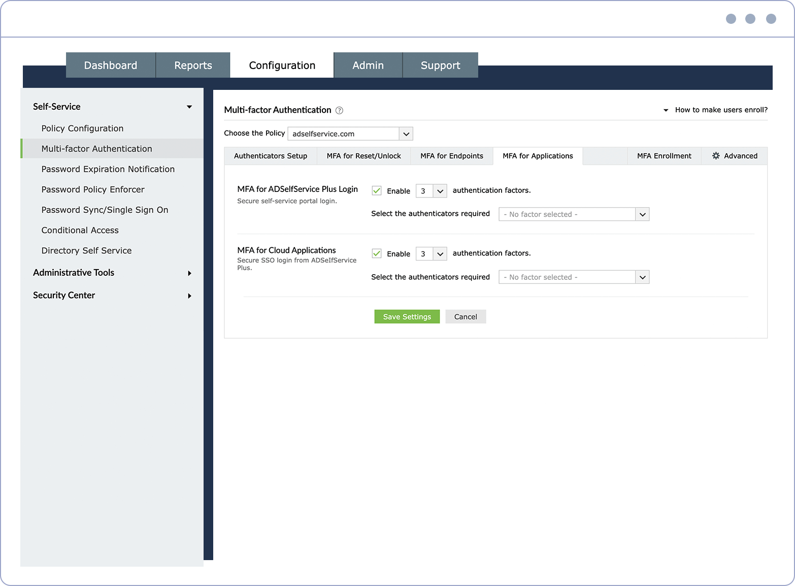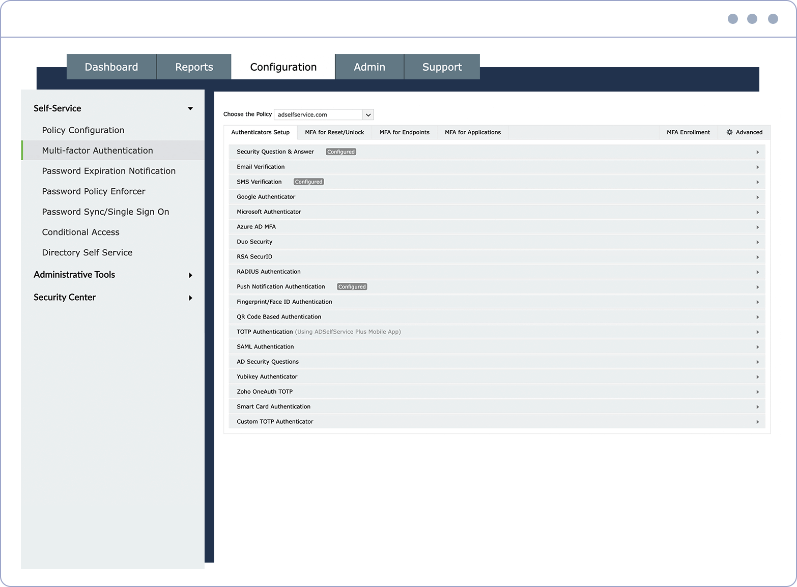 为了实施这些原则,组织需要部署具有自适应身份验证和用户严格信任策略的多因素身份验证(MFA)解决方案。ADSelfService Plus是一个全面的身份安全解决方案,可以帮助您的组织实施零信任,具有MFA、条件访问、无密码身份验证和可自定义的信任策略设置等高级功能。实施零信任不仅有助于您的企业在身份安全方面脱颖而出,还能为您的员工创造更简单的网络基础架构和更好的用户体验。