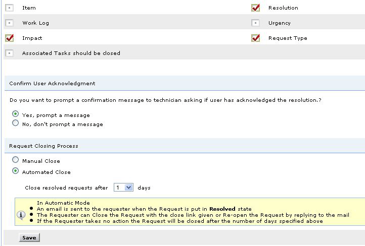 每位支持人员都知道,关闭事件真的是一项痛苦的任务,因为只有在问题解决方案向用户确认后才能关闭事件。ServiceDesk Plus - MSP可让您选择为用户提供关闭事件的权限。