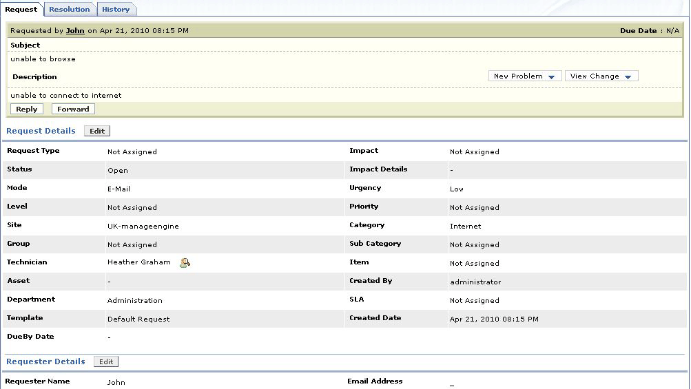 ServiceDesk Plus - MSP允许配置特定于每个帐户的工作流。接下来将解释一个典型的工作流