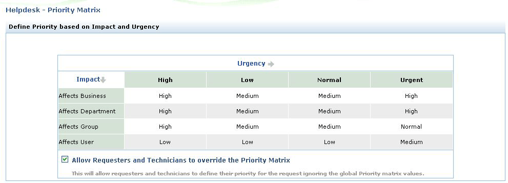 事件可以以不同的方式影响组织。根据事件的影响和紧迫性定义优先级。它最大限度地减少事件对业务的影响。在大公司中,确定事件的优先级可能会比较困难,因为请求的数量会更多。根据所报表的故障,将会有用于分配事件优先级的预定义标准。优先级矩阵可帮助您根据影响和紧急程度级别自动将优先级分配给事件。