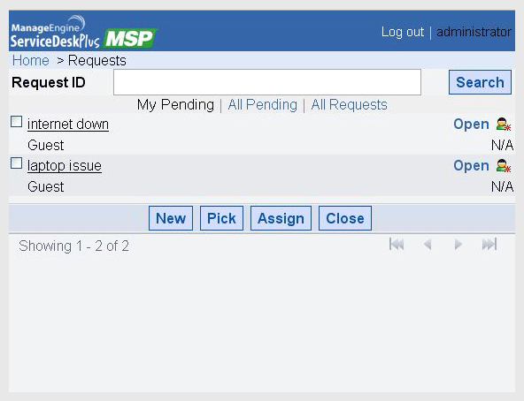ServiceDesk Plus MSP has developed a completely web based mobile application, which can be accessed through mobile browsers across various platforms. It´s a convenient mode to access tickets instantly when your help desk technicians are away from their seat, in a meeting or at any other location. With Mobile Client, the productivity chart of your help desk team is sure to soar high.