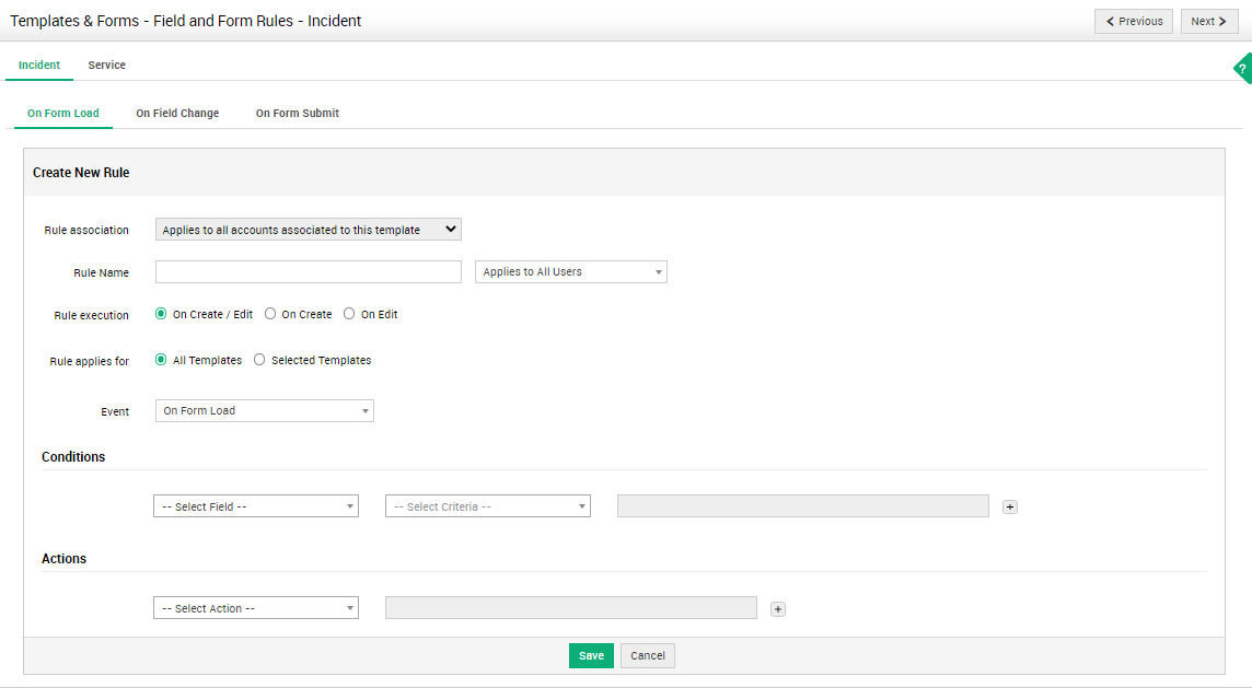 Create rules during any of these events: On-form load, on field change and on-form submit.