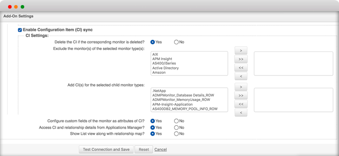 ServiceDesk Plus与Applications Manager的无缝双向集成——首先通过自动检测发现ServiceDesk Plus的配置管理数据库(CMDB)中的所有IT组件,然后在Applications Manager中创建各组件之间的依赖关系——该过程生成了整个IT基础设施和应用程序的可视化图解。跟踪IT基础架构中所有配置项(CIs),映射关系并预测各配置项对业务的影响(如果进行了任何修改)。