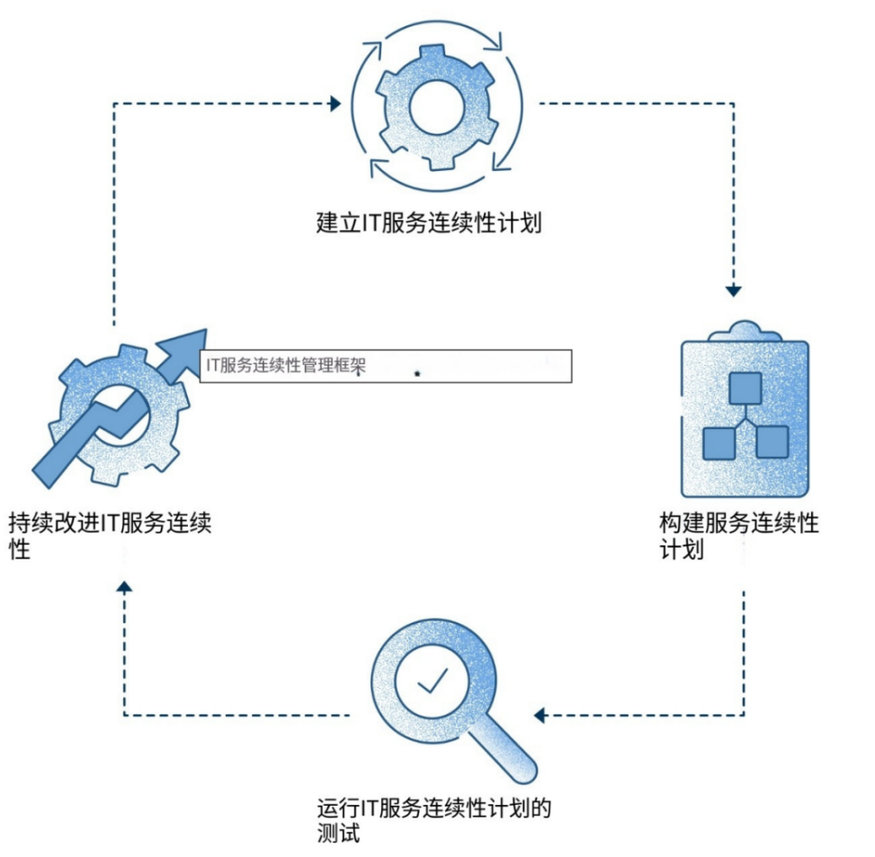 如前所述,IT 服务连续性是一个循环推进的过程,通常遵循以下四个关键步骤: