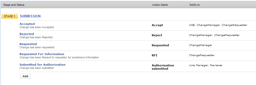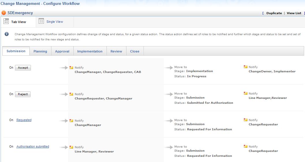 变更生命周期的每个阶段可能有各种状态,如:批准、拒绝、信息请求等。在每个状态下,都会向某些特定角色的用户发送通知,提醒他们变更请求的进度。您还可以为变更请求配置通知模板。