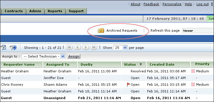 Once the requests are archived, you can view the archived requests from the Request tab. Click Archived Requests link to view the list of archived requests. [