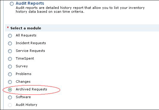 You can create custom reports on the archived requests. To do so, click Reports tab -> New Custom Reports, select the module as Archived Requests. You can also generate reports by executing a query on the query editor under Reports -> New Query Report. [