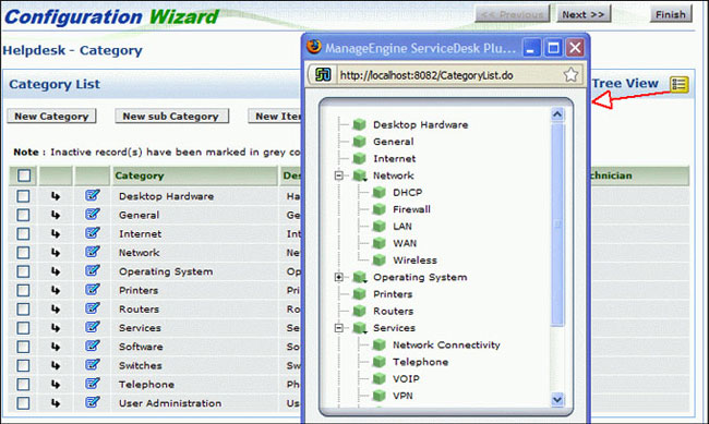 The Category Tree View helps you accomplish this goal ! You can view all Categories, Sub-Categories and Items configured in ServiceDesk Plus.