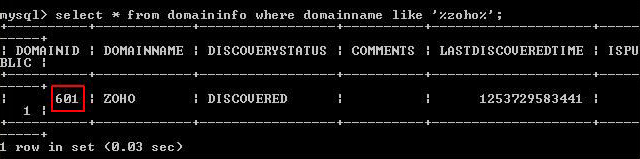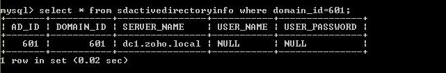mysql> select * from sdactivedirectoryinfo where domain_id=601; [