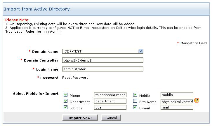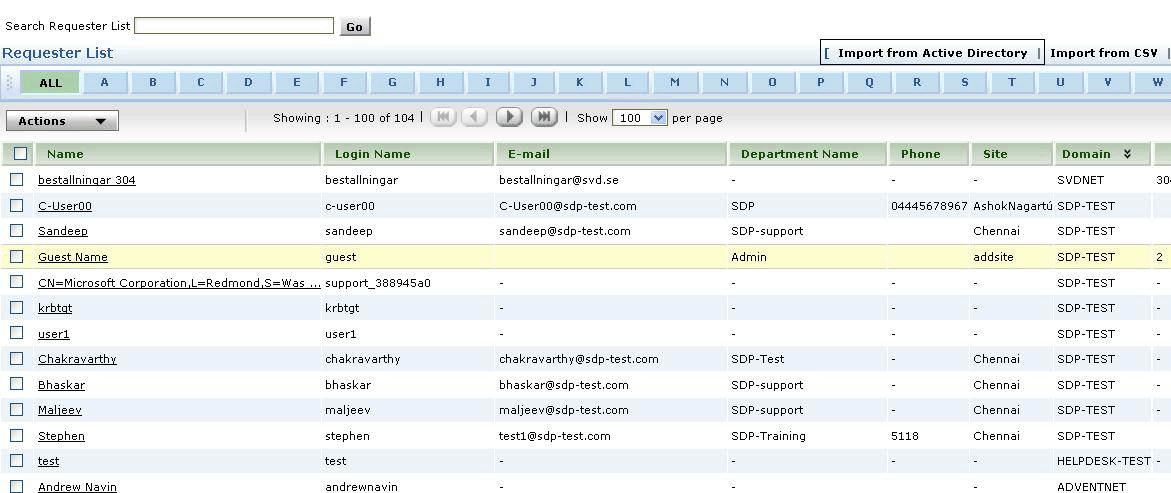 All you have to do is to provide this user with the URL for ServiceDesk Plus login screen. The moment the user enters his domain username, password, selects the domain he belongs to and clicks login he will be automatically added into ServiceDesk Plus as a requester. This is called Dynamic user addition.