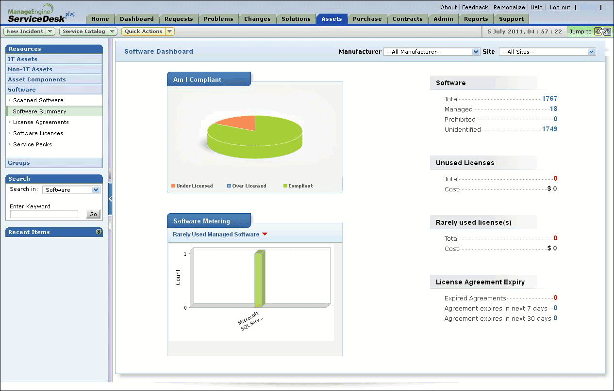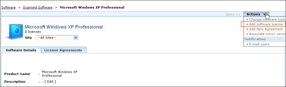 Licenses can be added only for Managed Software. You can add Software Licenses in two ways: