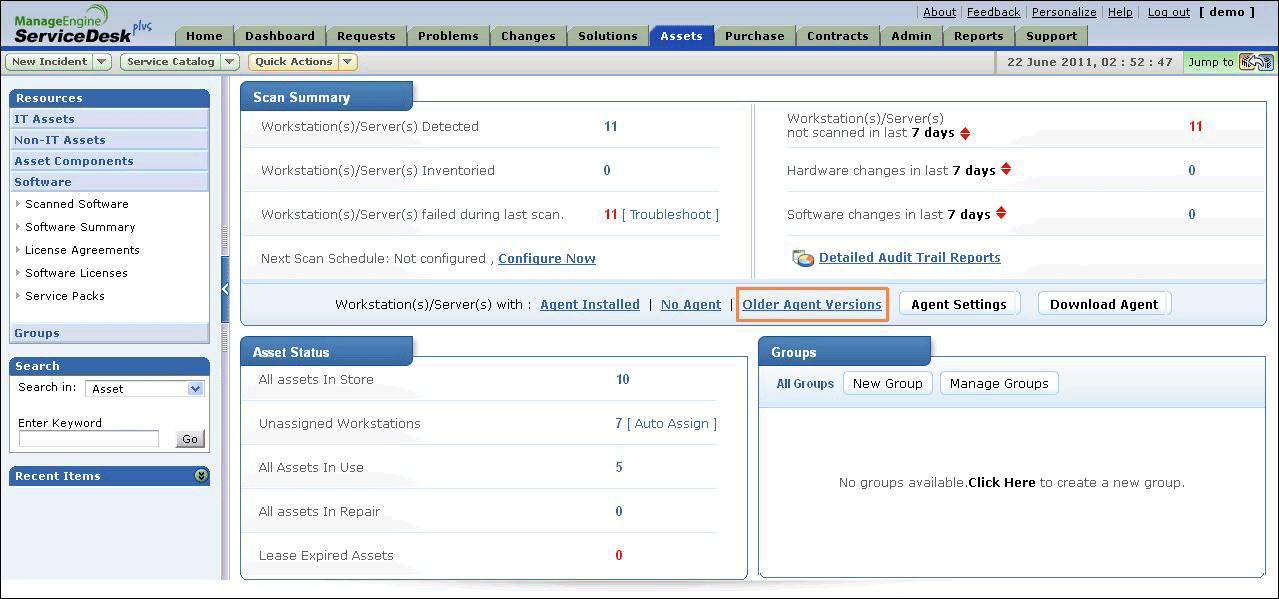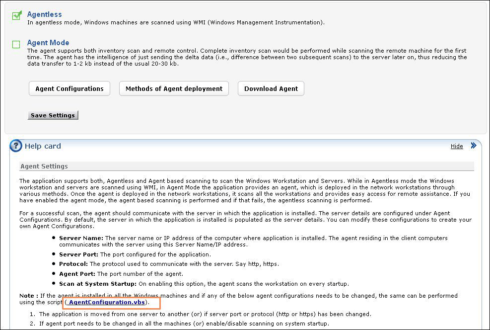 If ServiceDesk Plus is installed in a Non - Windows server like say, Linux, then you can still use the Agent Mode to scan Windows machines. But, you can neither configure the Agent details from Agent Settings page nor install and upgrade the agent from the linux server.