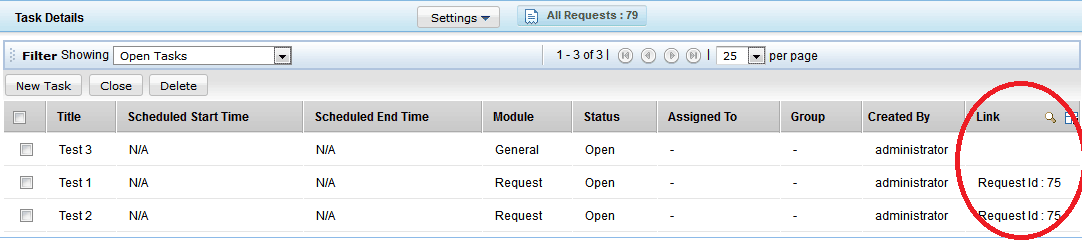 Request associated to Tasks get displayed under Link Column in the form of Request ID, which when clicked will open that particular Request.