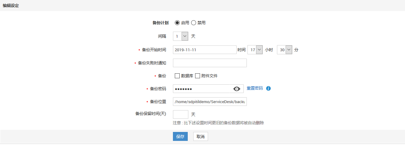 - 如果备份失败,请提供要通知的技术人员的电子邮件地址。