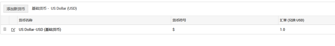 您可以从列表视图中编辑或删除货币。 使用相应的图标执行所需的操作。