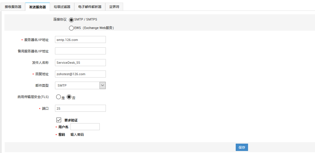 | 邮件类型 | 选择要使用的邮件发送类型; 如果需要,请启用TLS。 |