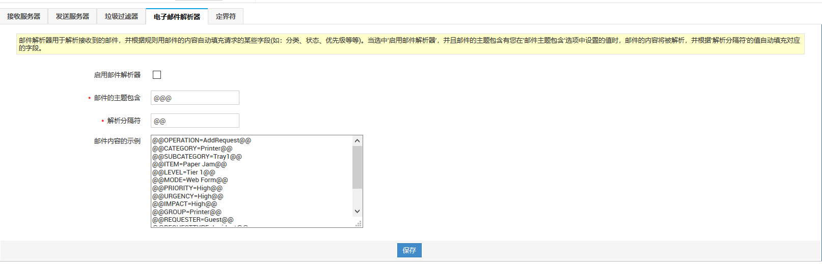 | 启用邮件解析器 | 选择此选项可激活电子邮件解析。 |