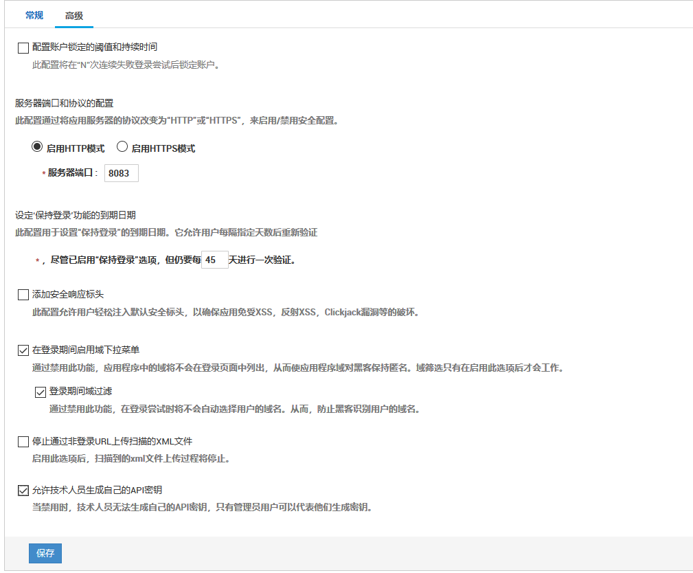 安全设置允许管理员配置与安全相关的选项,而无需寻求技术人员帮助解决安全漏洞。 通过配置常规和高级设置,管理员可以确保保护应用程序免受各种类型的漏洞的侵害。