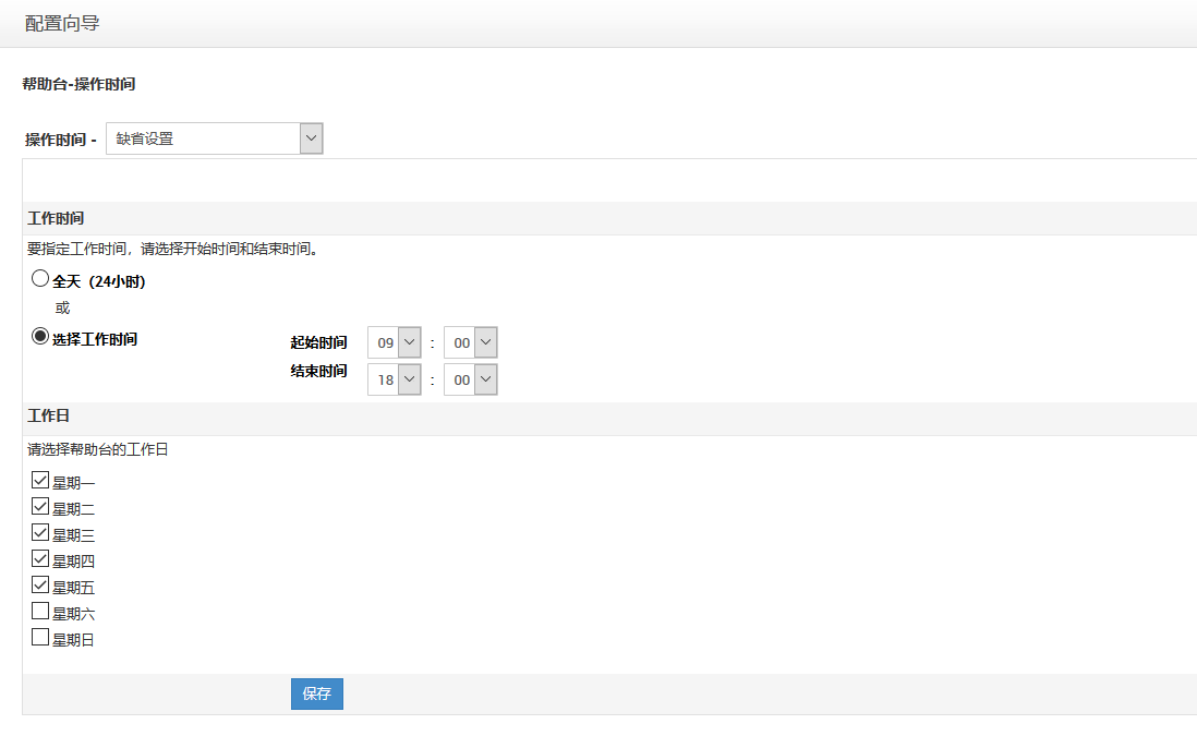 每个团队的工作时间可能有所不同。 例如,对于IT支持,工作时间可以是24 * 7,而财务支持可以是每周三天,每天5小时。 您可以根据每个实例的要求配置工作时间。