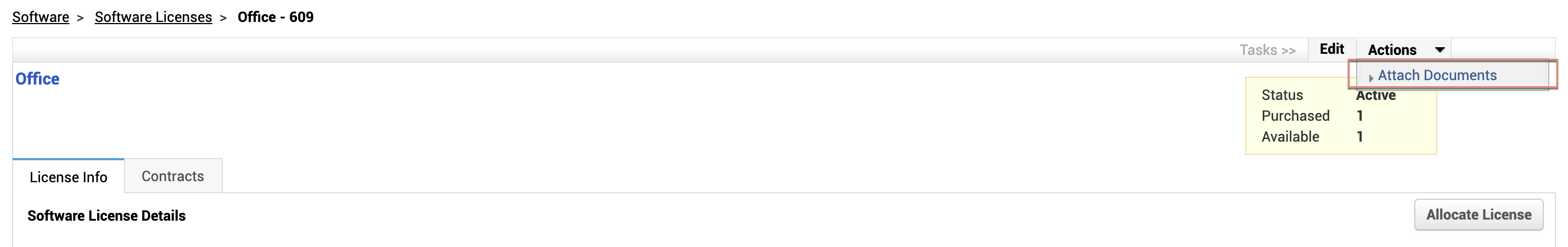 在软件许可证列表视图中,选择所需的软件许可证,进入软件许可证详细信息页面。