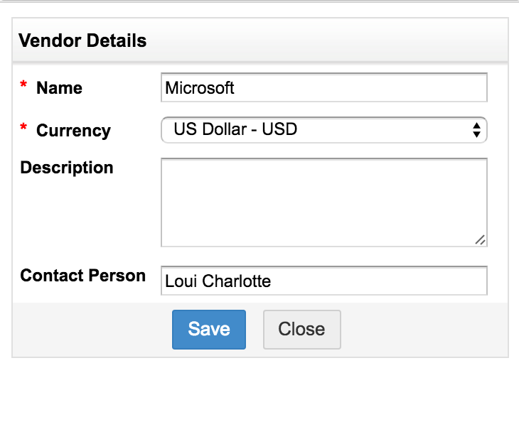 在相应字段中指定采购和发票详细信息,例如采购订单编号、采购订单名称以及软件购买日期。