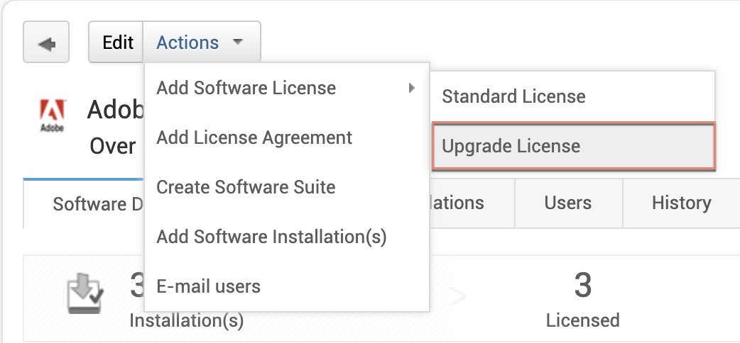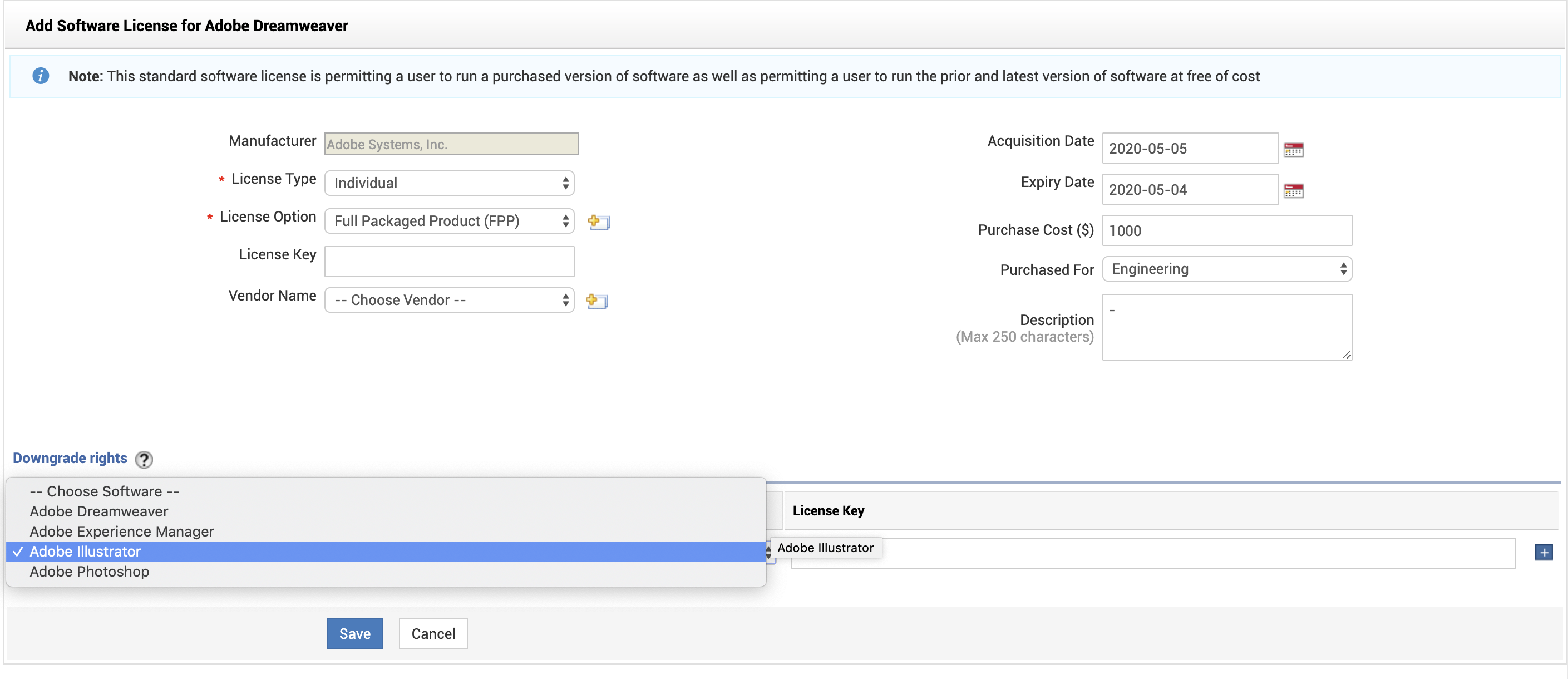 - 不仅可以在添加软件许可证时为其提供降级权限,也可以在编辑时提供[有关更多详细信息,请参阅编辑软件许可证]