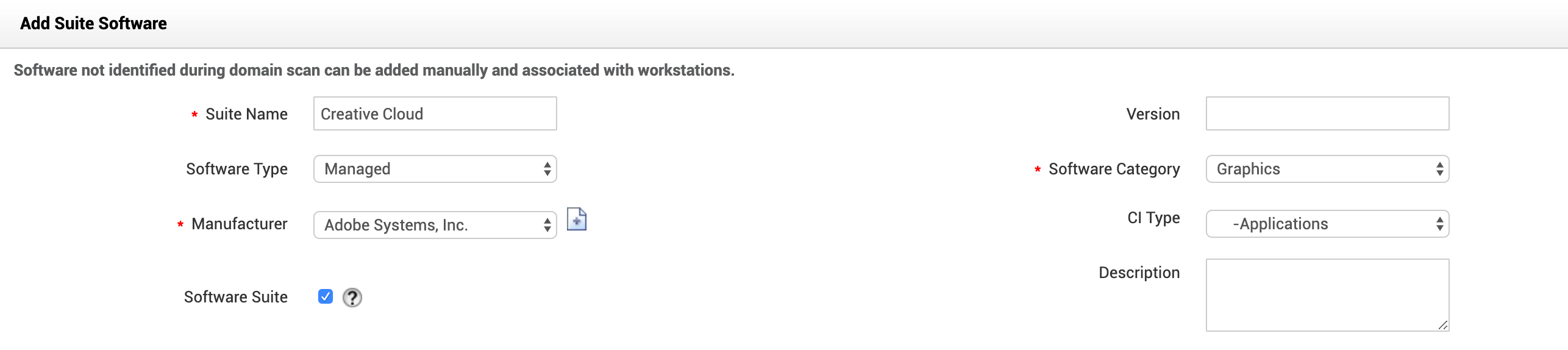要添加新的软件套件,请转到 管理>>资产>>已扫描的软件。