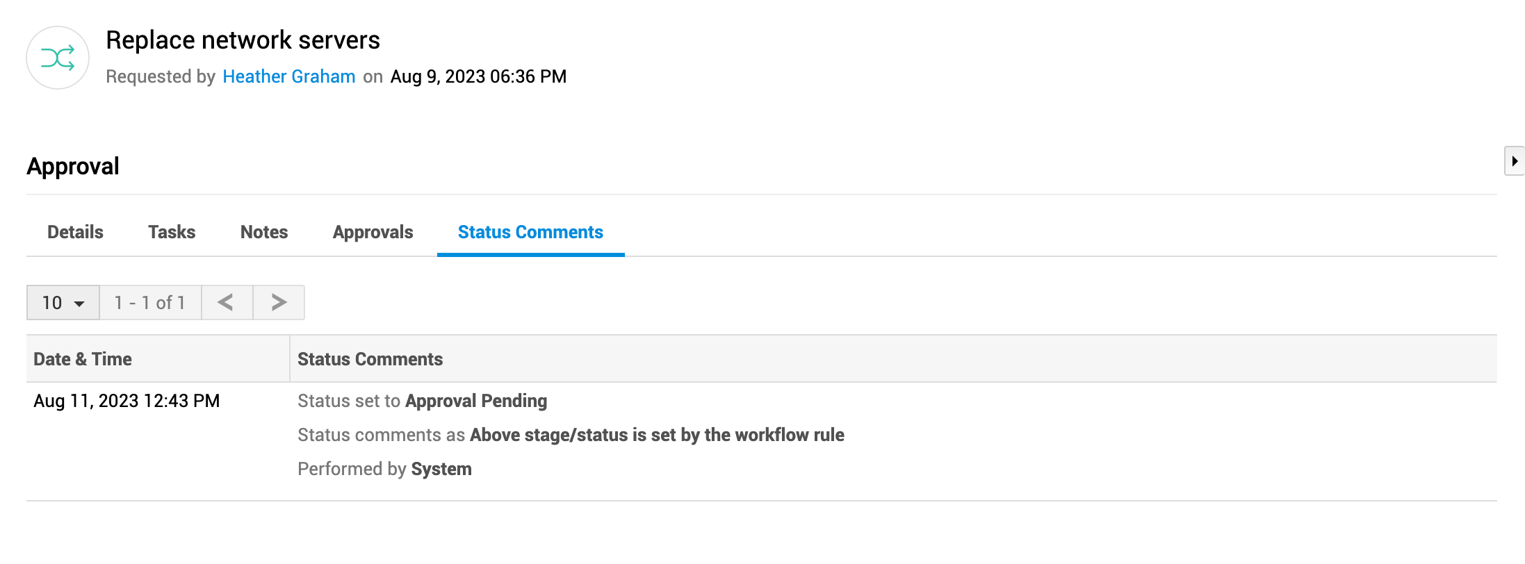 查看变更在批准阶段的状态转换,以及转换期间添加的评论。