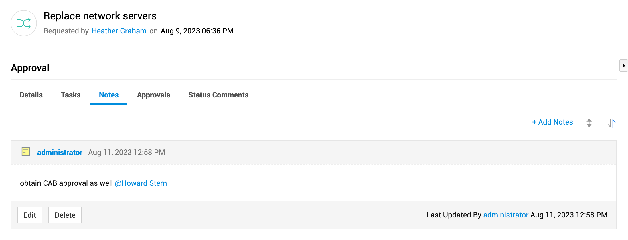 技术人员可以添加备注,补充有关批准阶段的重要信息,并通过标记用户来通知他们。
