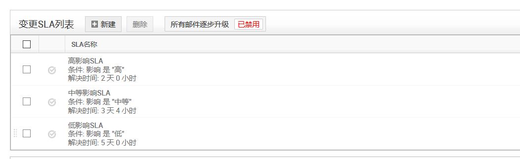 注意:通过选择SLA然后单击“删除”,可以删除变更SLA。但是如果该SLA正在使用中,比如已经匹配了某个“变更”,则该SLA标将被记为