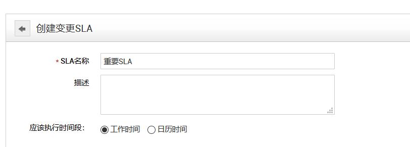 3.单击“新建”时,将显示“创建变更SLA”窗口。输入SLA的唯一名称,并根据需要提供有关SLA的说明。