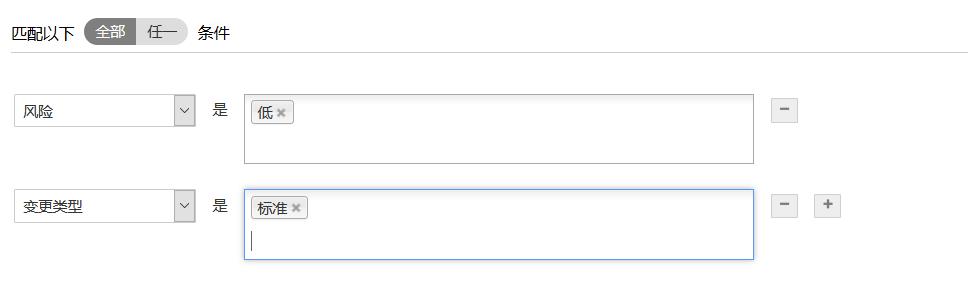 5.在“匹配以下全部/任一条件”中,选择所需字段和列出的相应条件。单击“+/-”,可以添加或删除多个条件。