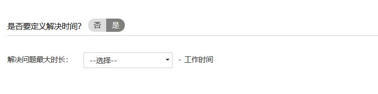 6.通过在开关按钮中选择“是”来定义解决时间。选择解决“变更”的最大时长(操作天数和小时数)。如果不需要定义解决时间,请选择“否”。