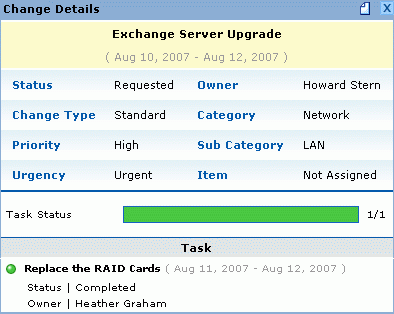 日历视图中的彩色条形图,将横跨变更的计划开始日期和计划结束日期。